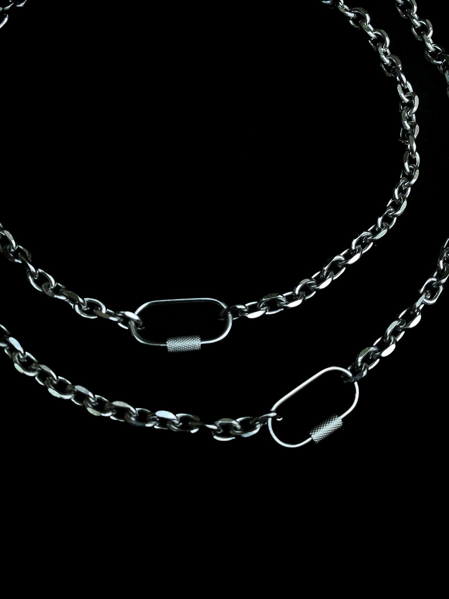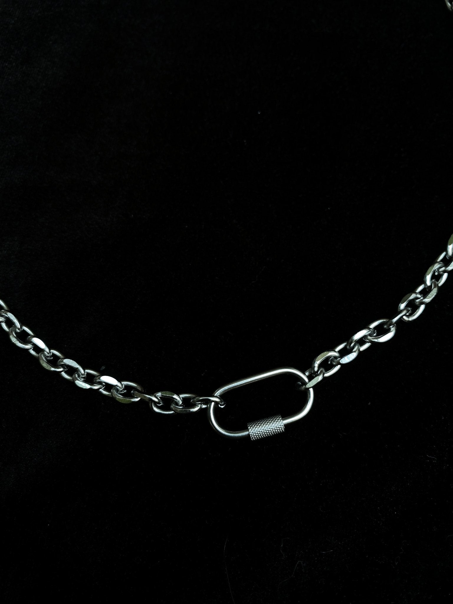 chunky chain necklace with screw lock carabiner closure