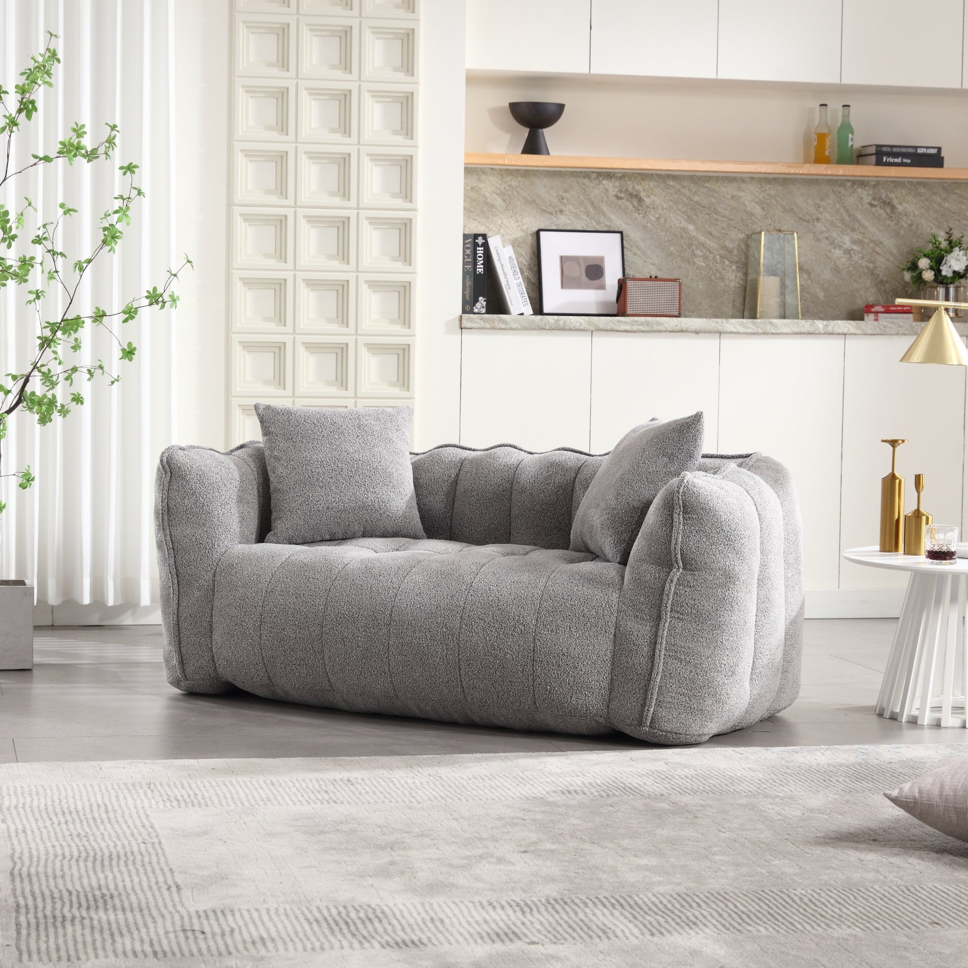 Cozy Beanbag Chair with High Resilience Foam Core for Two - Grey Chenille
