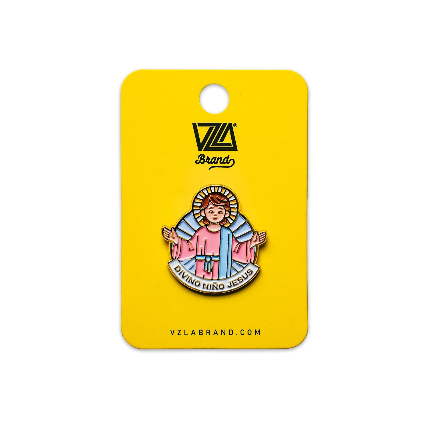 A tiny enamel pin in the shape of El Divino Niño Jesús to decorate your favorite cap, jacket or bag! Packaged on a little card — perfect for gifting.