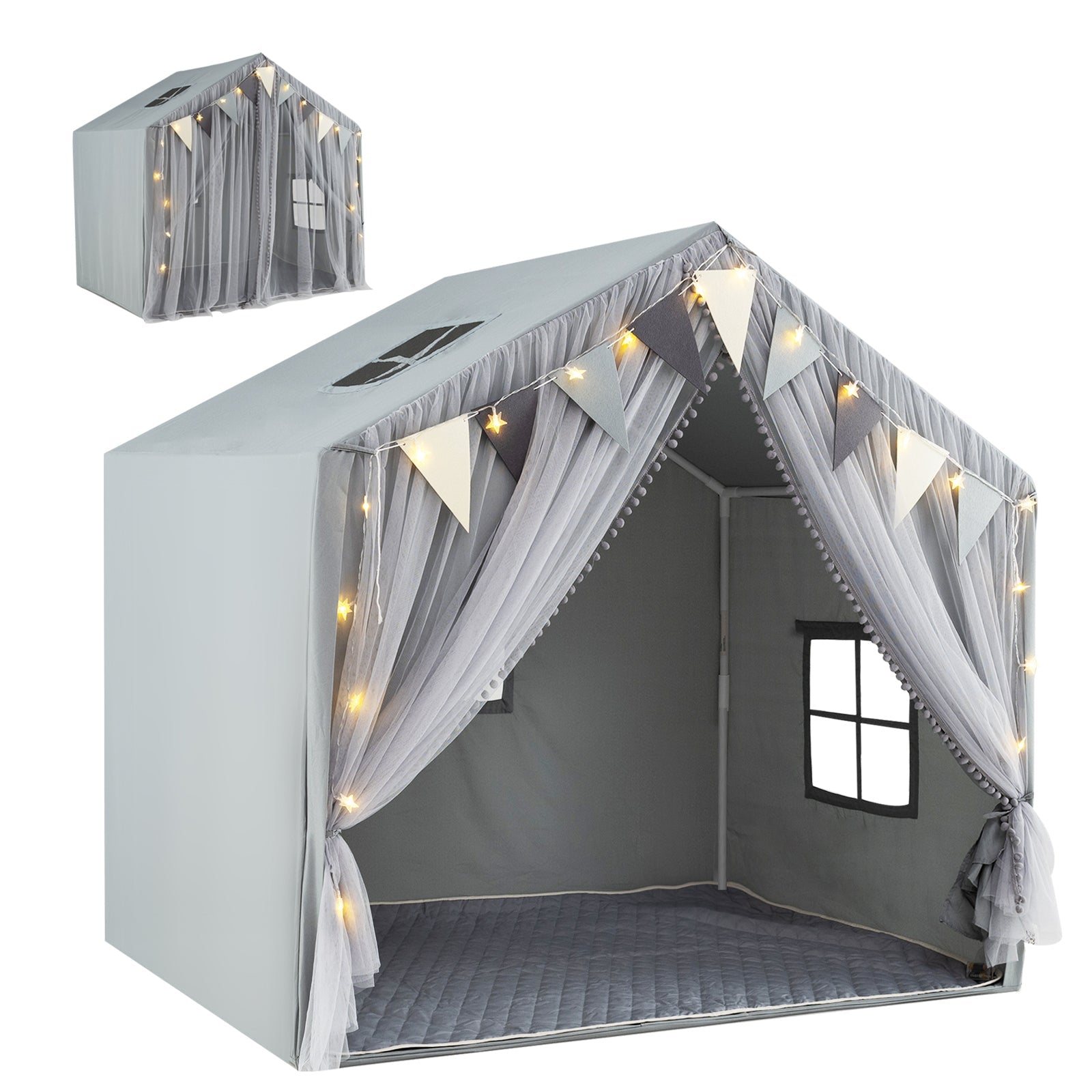Large Toddler Playhouse Tent with Door Curtains Windows-Gray