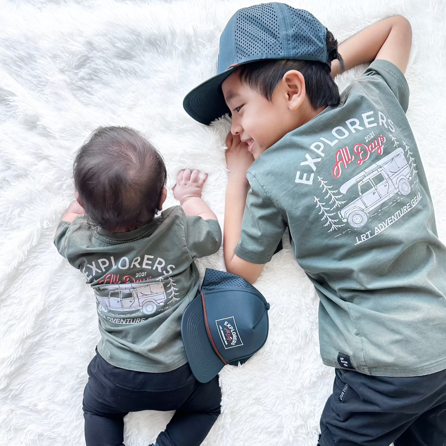 - Adventure-themed Explorer graphic for boys who love the outdoors