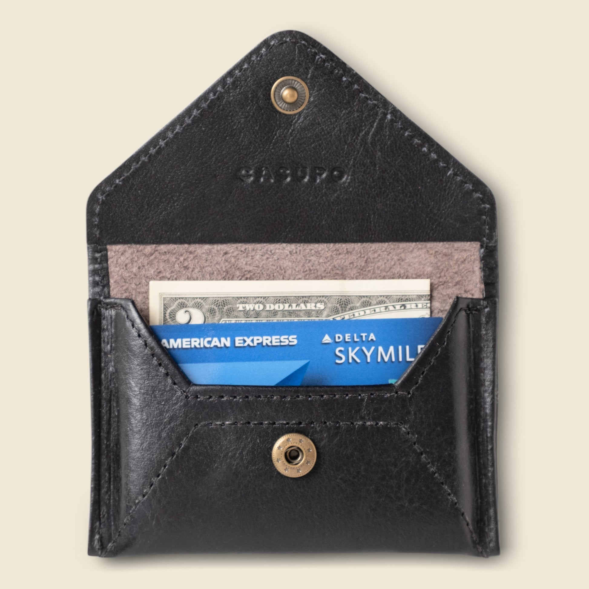 A compact envelope card holder to keep all your cards and cash in one place securely.