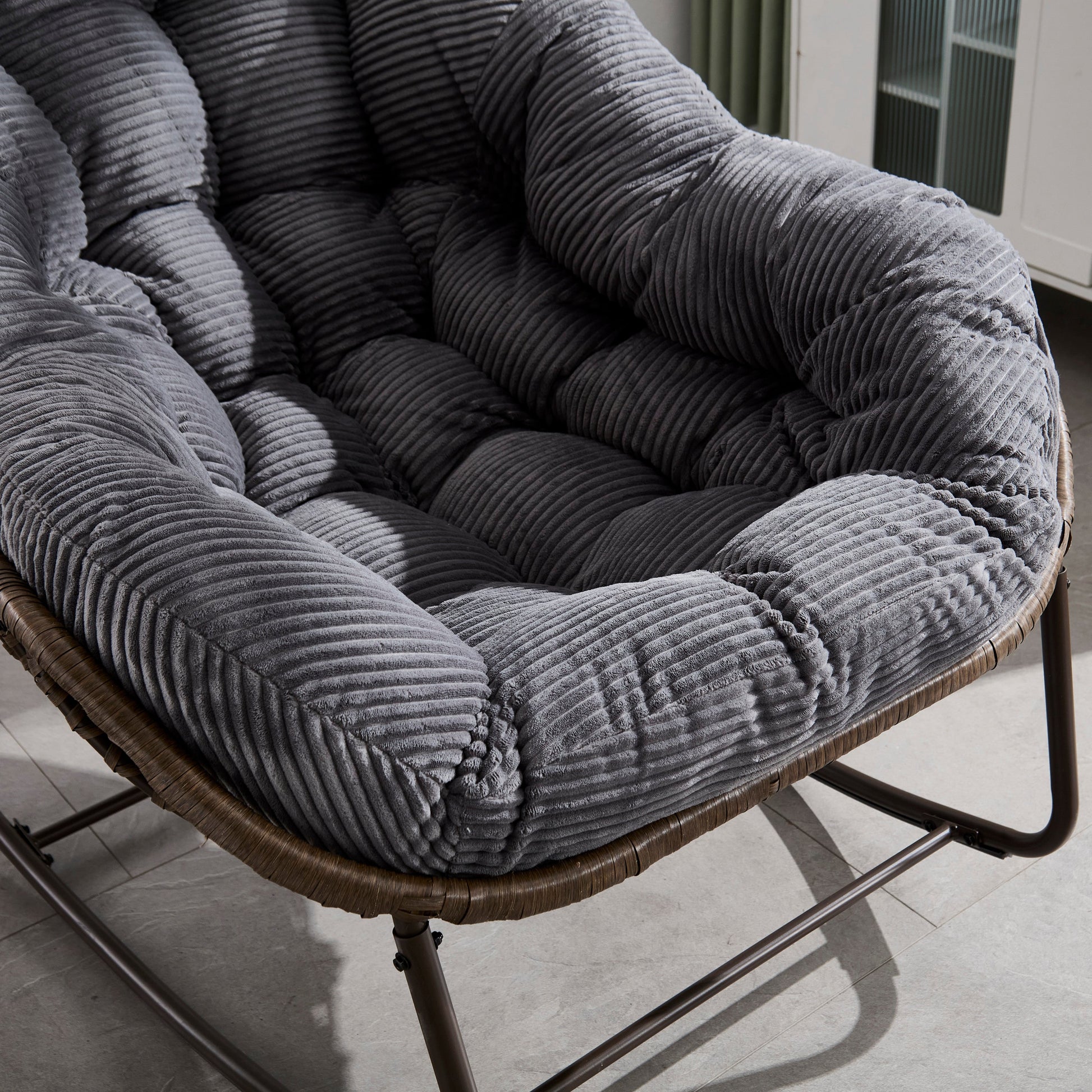 - Is larger than the general rattan chair.Maximum load 250lbs/113kg. The comfy oversized rocking chair is suitable for all kinds of people and perfect for decorating your front porch, patio, living room, etc.