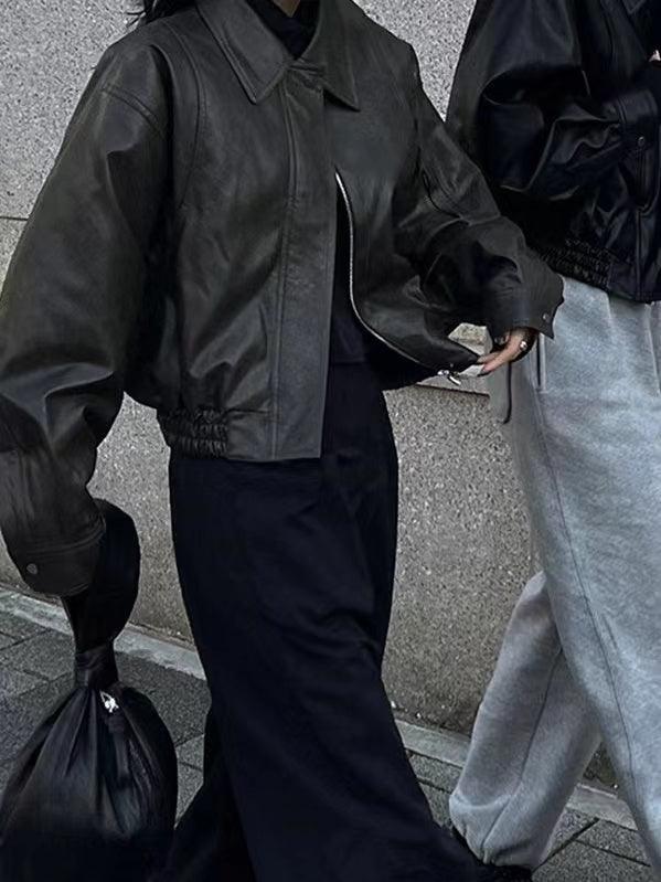 Retro Lapel Zipper Motorcycle Leather Jacket