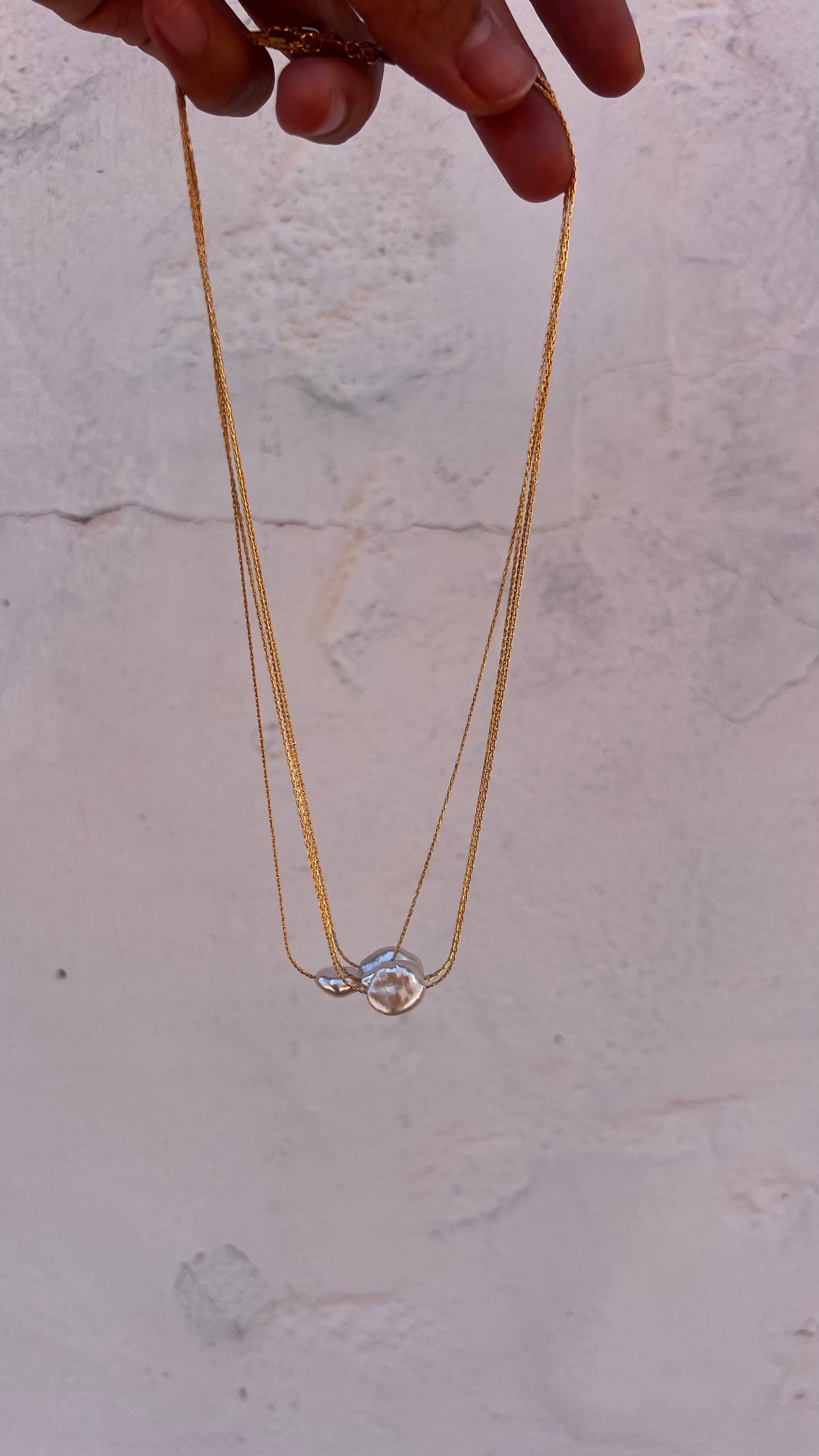 Inspired by the shimmer of sunlight on the sea, this minimalist chain features a luminous pearl pendant that reflects light with every movement. Effortless, ethereal, and made to glow — wherever the day takes you.