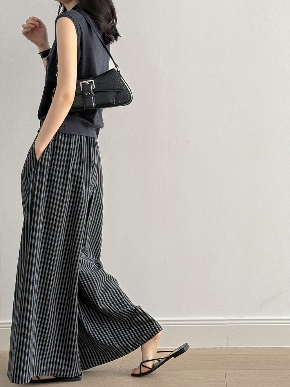 Striped Straight High Waist Wide Leg Pants