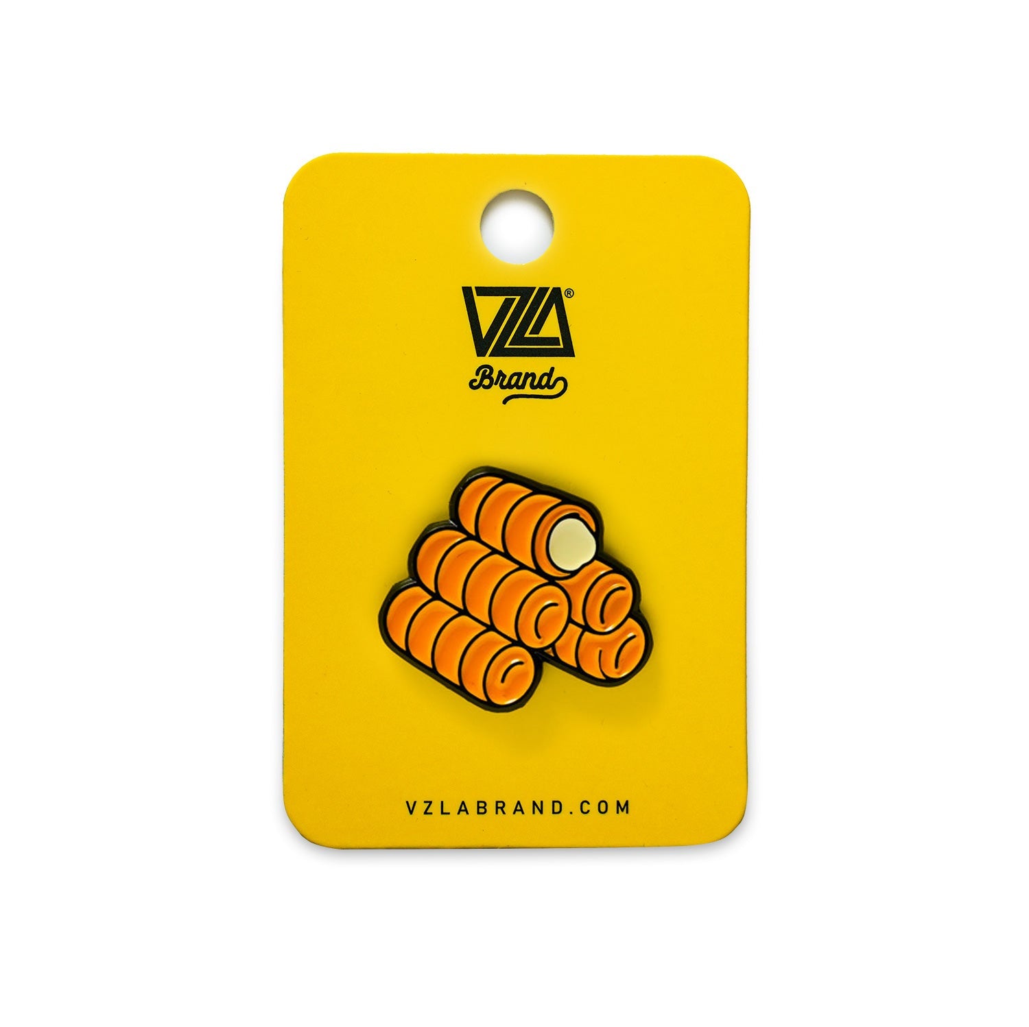 An enamel pin inspired by Venezuela’s most beloved party snack — golden, cheesy tequeños. A tasty symbol of celebration and tradition, perfect for carrying a piece of home with you.