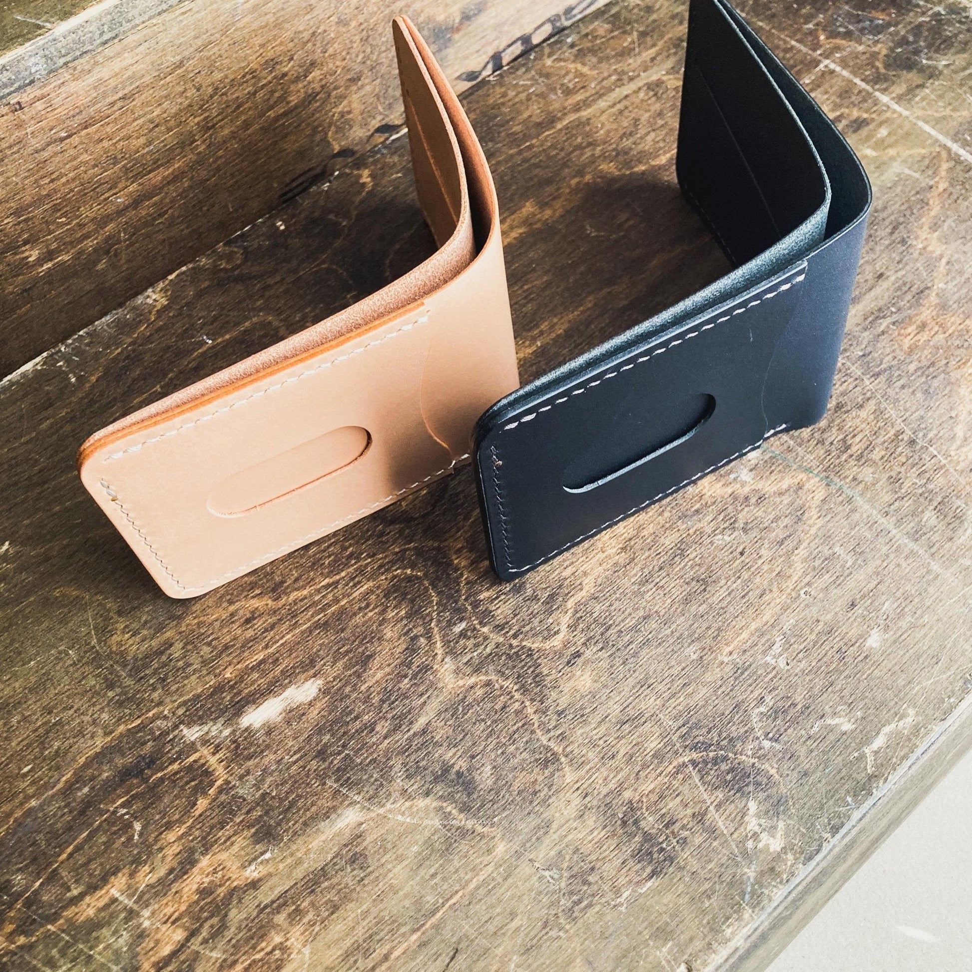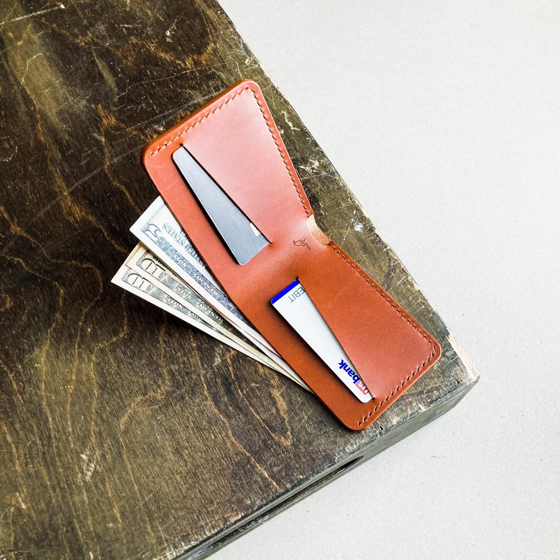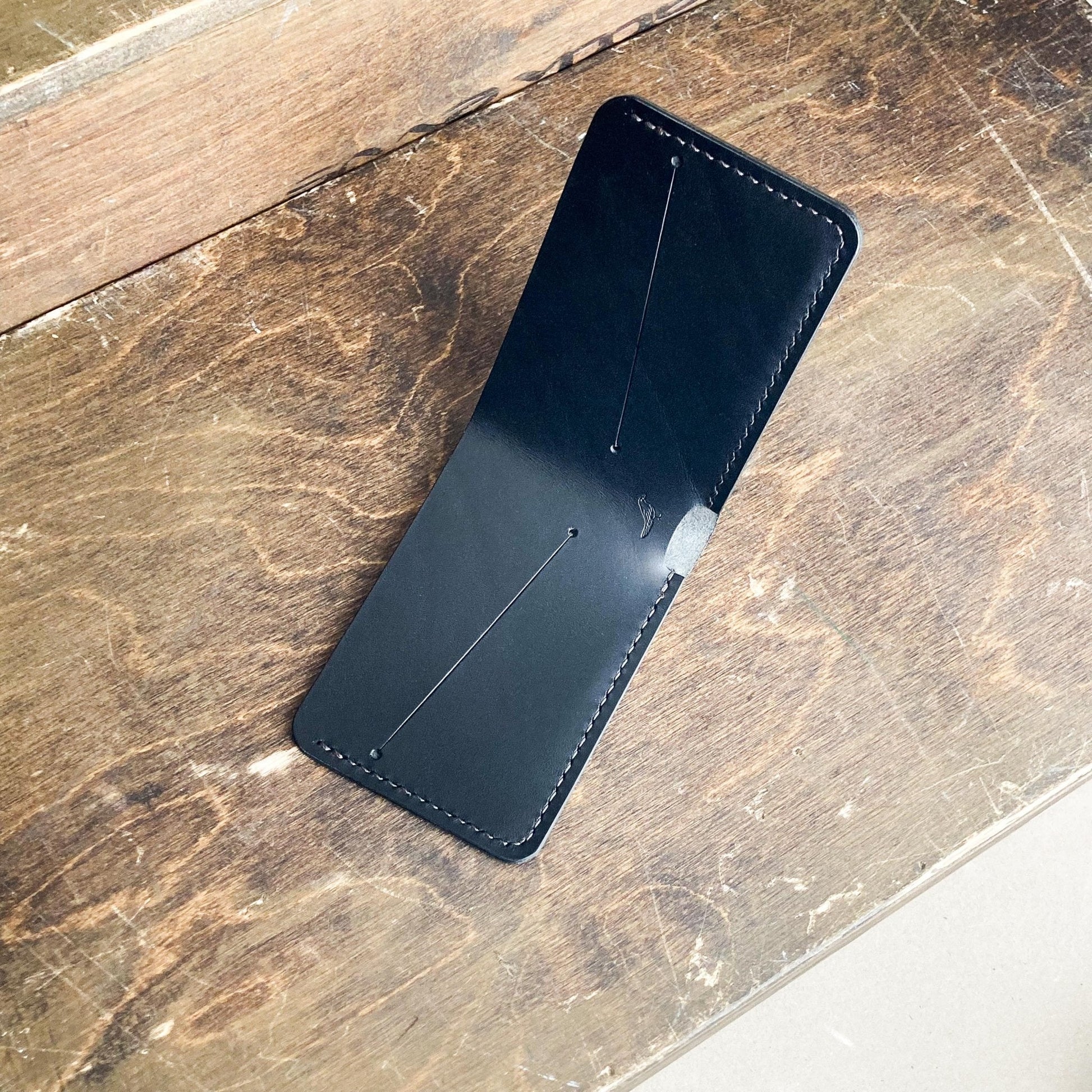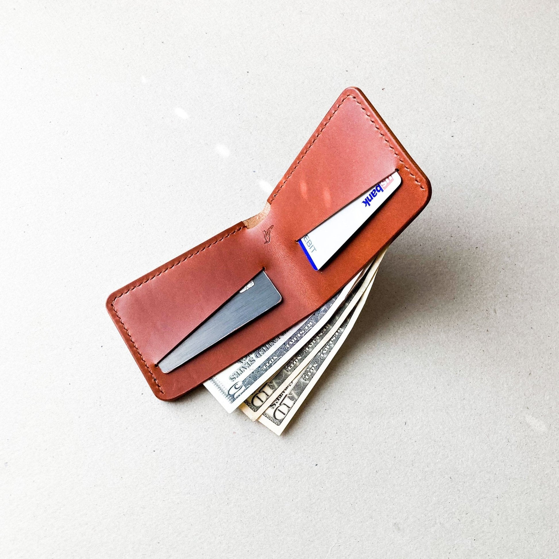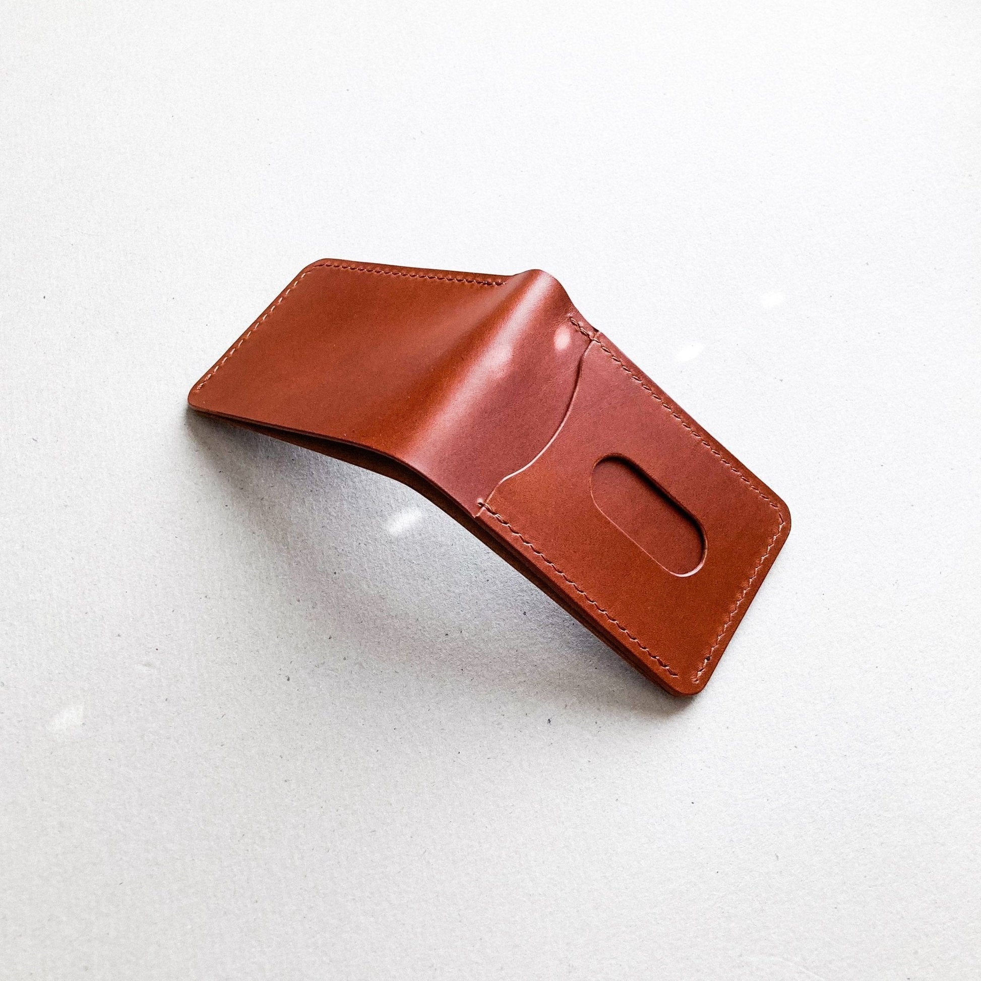 A simple and minimal bifold wallet, compact without sacrificing function. Designed to fit US currency.