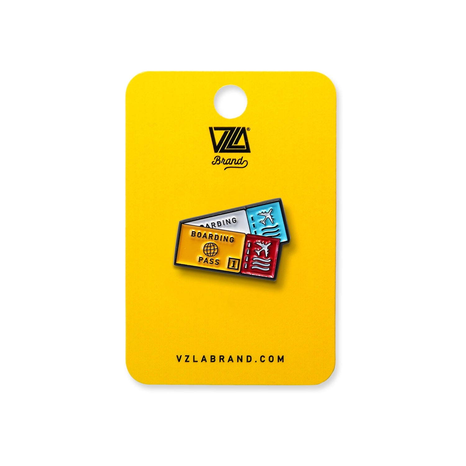 A tiny enamel pin in the shape of "Boletos de Avion Pin" to decorate your favorite cap, jacket or bag! Packaged on a little card — perfect for gifting.