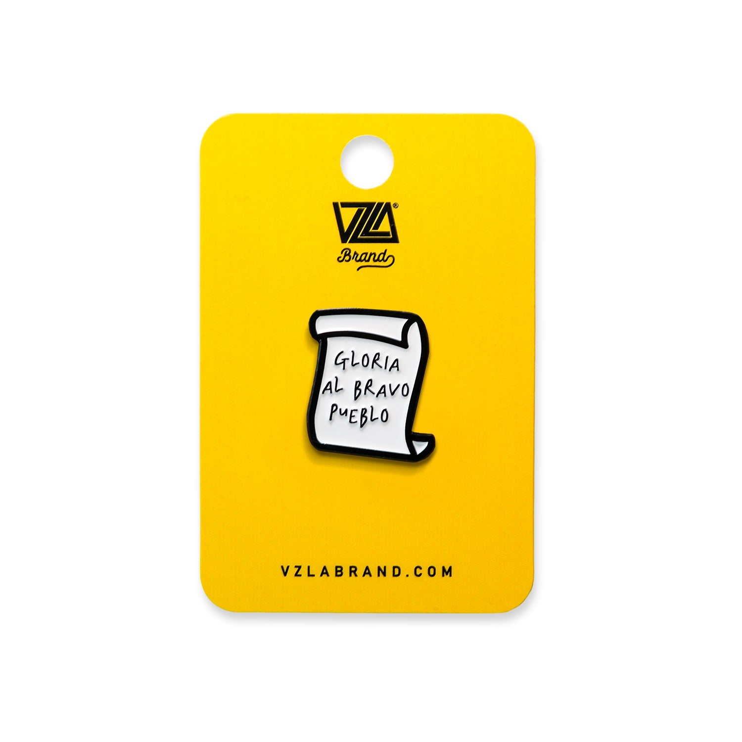 A tiny enamel pin in the shape of "Gloria al Bravo Pueblo Pin" to decorate your favorite cap, jacket or bag! Packaged on a little card — perfect for gifting.