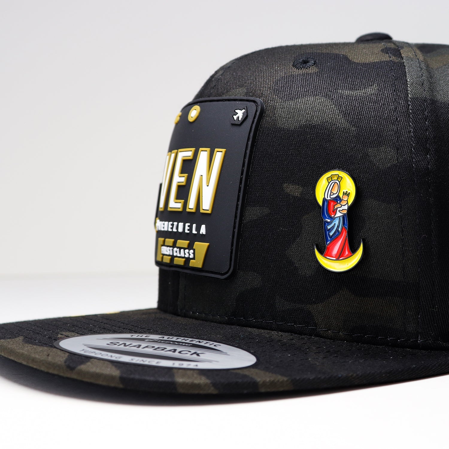 A tiny enamel pin in the shape of "Virgen de Chiquinquira" to decorate your favorite cap, jacket or bag! Packaged on a little card — perfect for gifting.