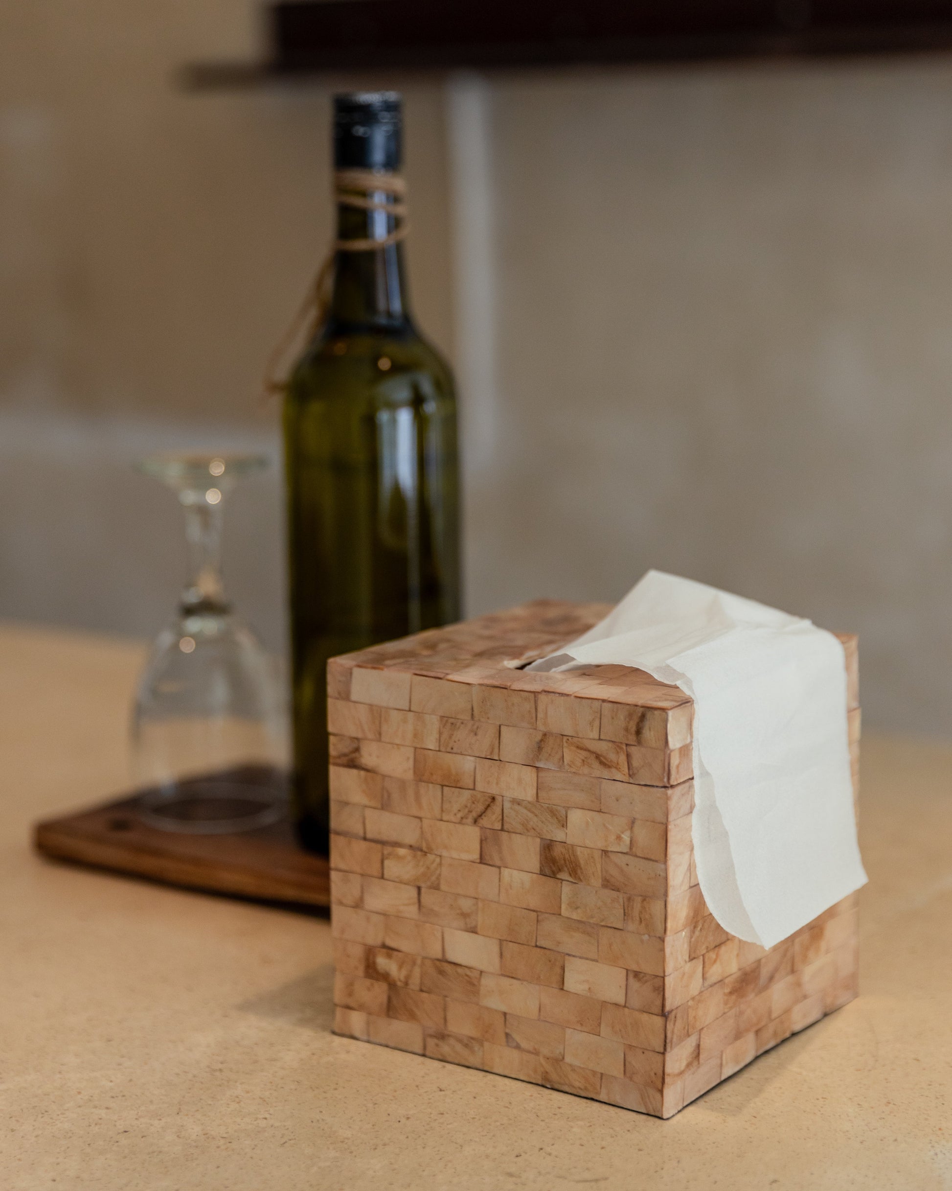 Elevate your everyday with this artisan-made tissue box cover, crafted from sustainably sourced wood in a natural, tiled design. Thoughtfully made to blend seamlessly into any space, it's the perfect balance of beauty and function.